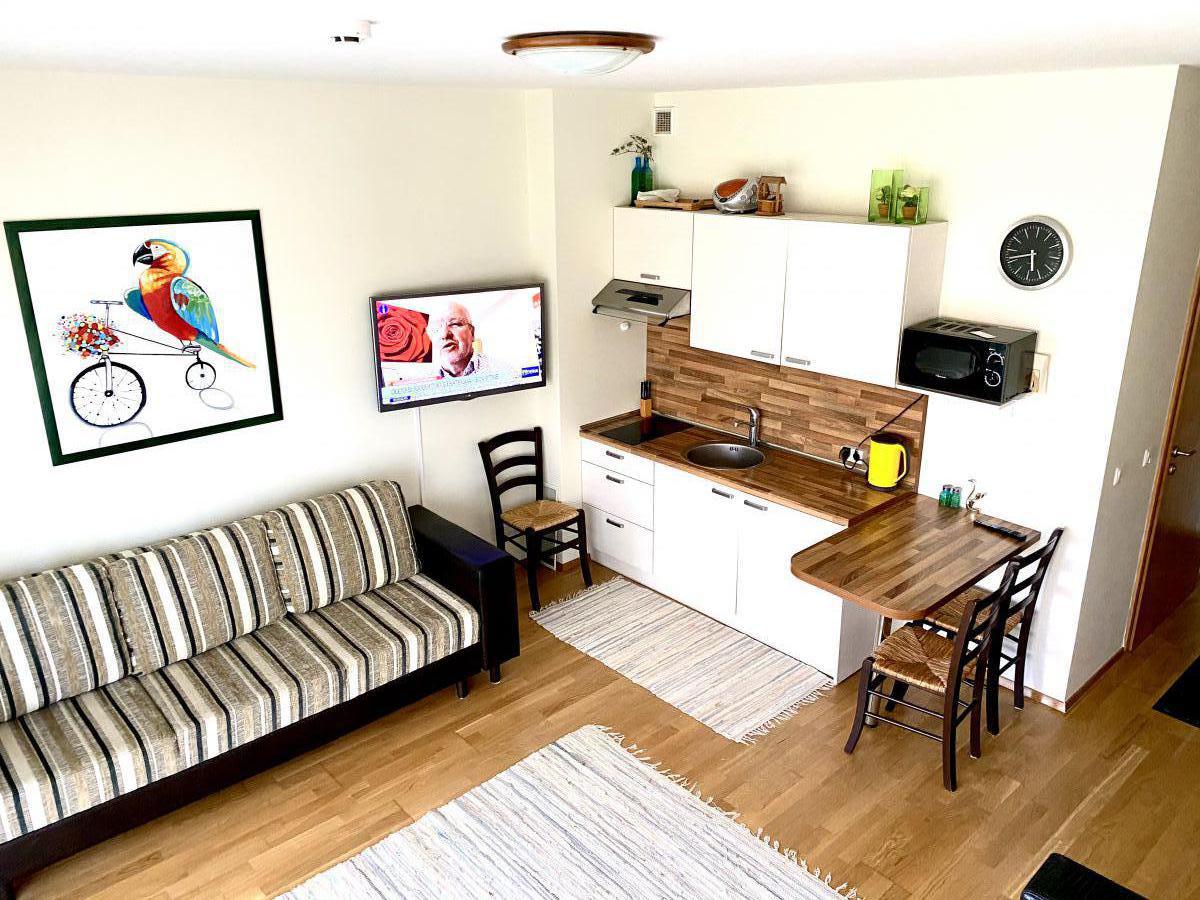 Ypatumai: Balkonas Nemokamas Wi-fi TV Skalbimo mašina Šaldytuvas Indai ir stalo įrankiai Viryklė Mikrobangų krosnelė Arbatinukas Plaukų džiovintuvas Skalbimo mašina Vonia ir WC Dušas ir WC Rankšluosčiai (nemokamai) Patalynė (nemokamai) Prie jūros