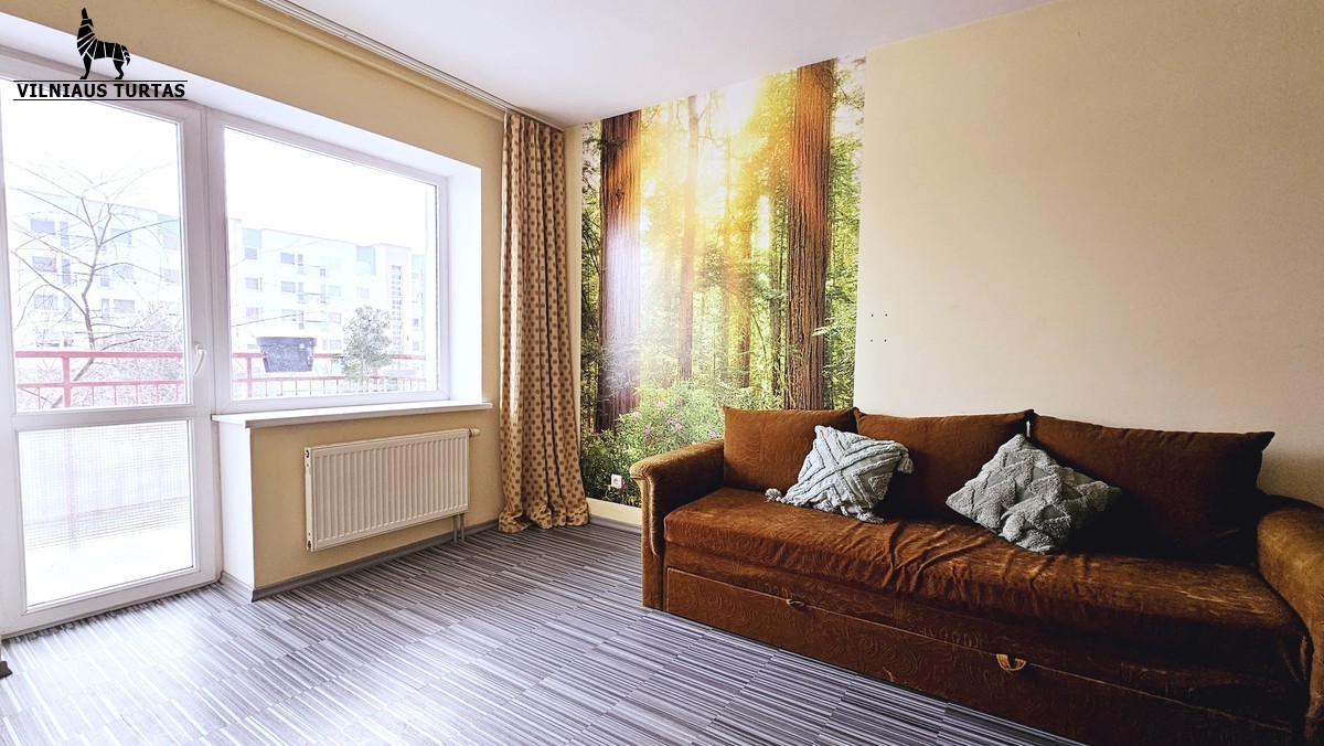 Karaliaučiaus g. 15, Pilaitėje, 2006 metų statybos name išnuomojamas šviesus, šiltas, ekonomiškas 1 kambario (34 kv/m) butas su balkonu: