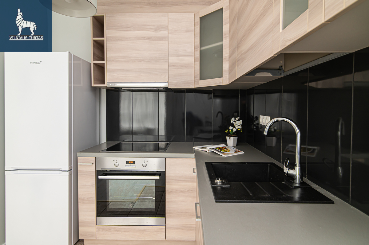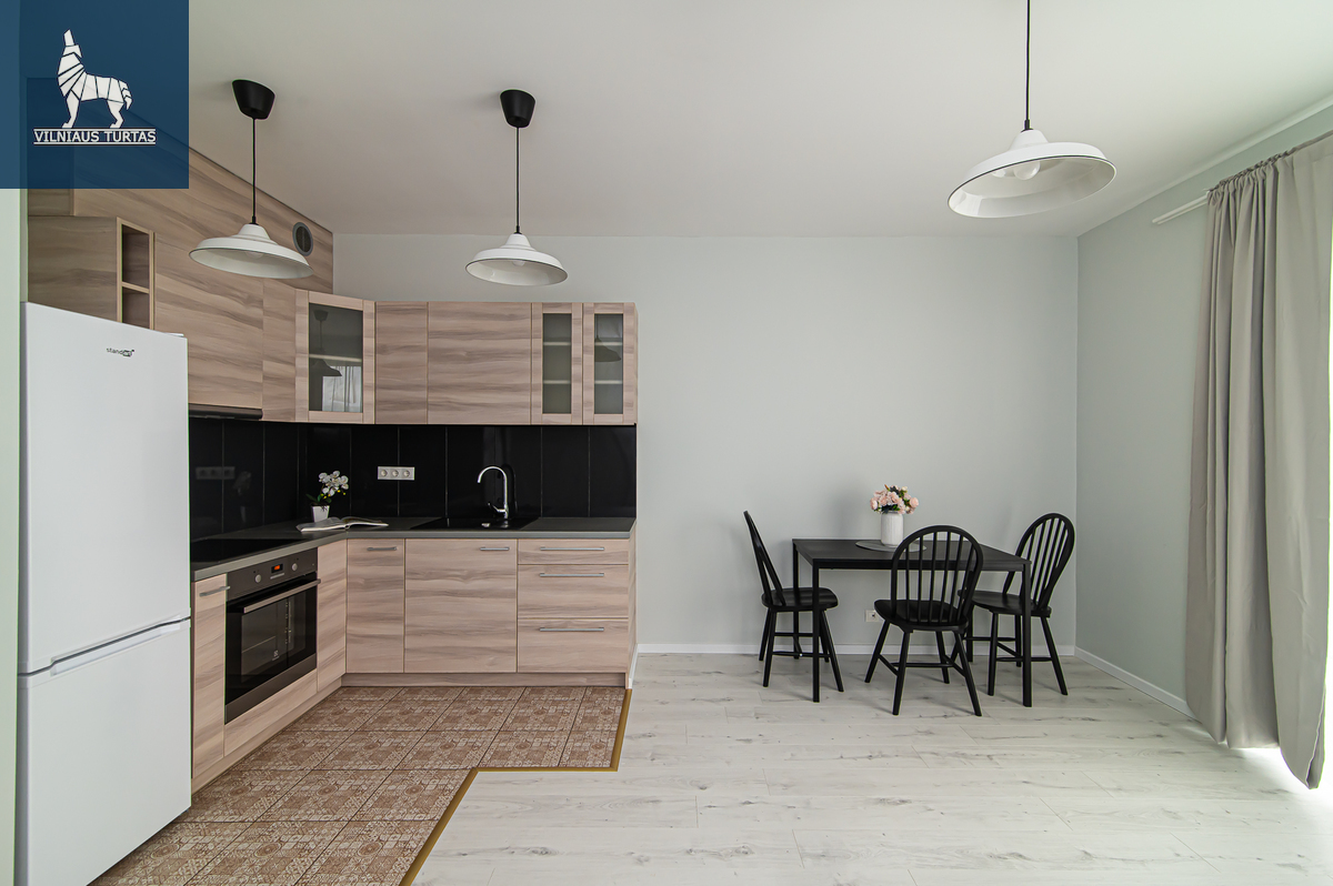 – Su baldais ir buitinė technika (orkaitė, elektrinė viryklė, šaldytuvas, skalbimo mašina);