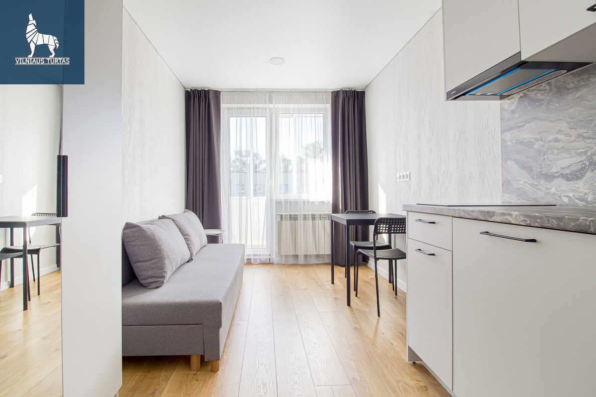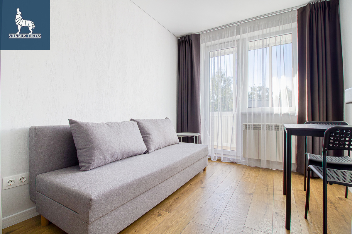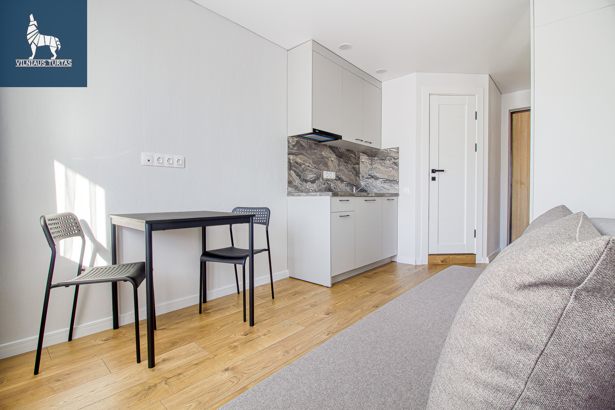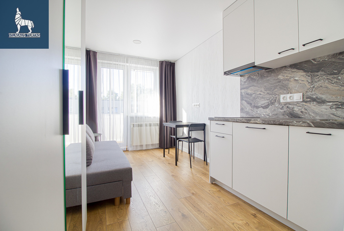 Nuomojamas 16 kv. m studijos tipo butas itin patogioje vietoje – Žirmūnuose. Butas idealiai tinka žmogui, vertinančiam šiuolaikišką įrengimą, tvarkingą aplinką ir patogų susisiekimą.