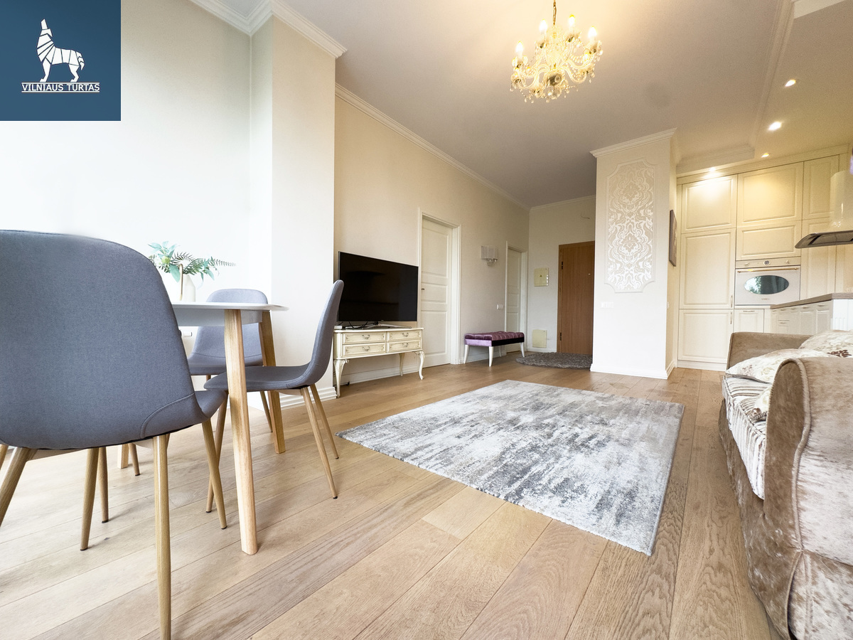 Pagrindiniai privalumai: 48,5 kv. m. ploto, 4 aukštas (su liftu). Šiuolaikiškas interjeras, aukštos lubos, parketas. Pilnai įrengta virtuvė su buitine technika ir indaplove. Erdvi svetainė su valgomuoju, atskiras miegamasis. Erdvi vonia, skalbimo mašina su džiovykle. Vieta automobiliui, uždara laiptinė su kodine spyna.
