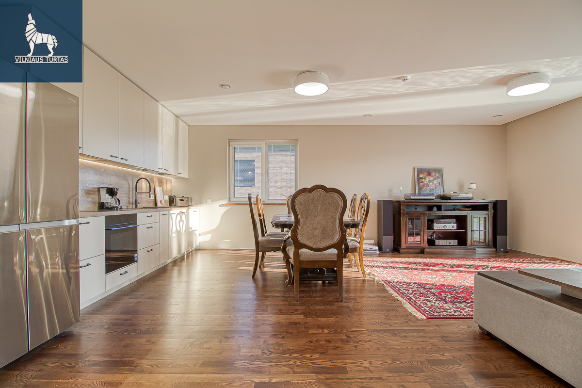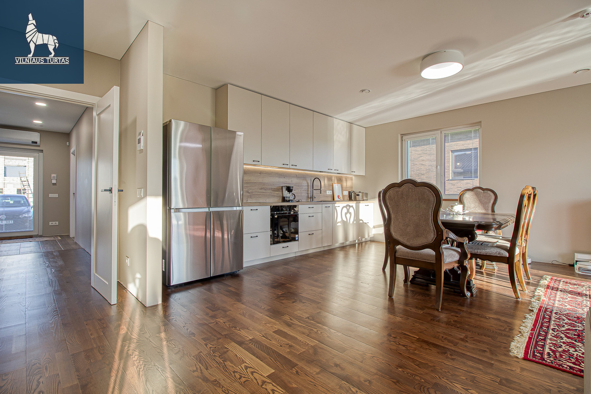 • Svetainė sujungta su virtuve – erdvi ir šviesi, su patogiu valgomojo stalu šeimos pietums ar draugų vakarienėms.