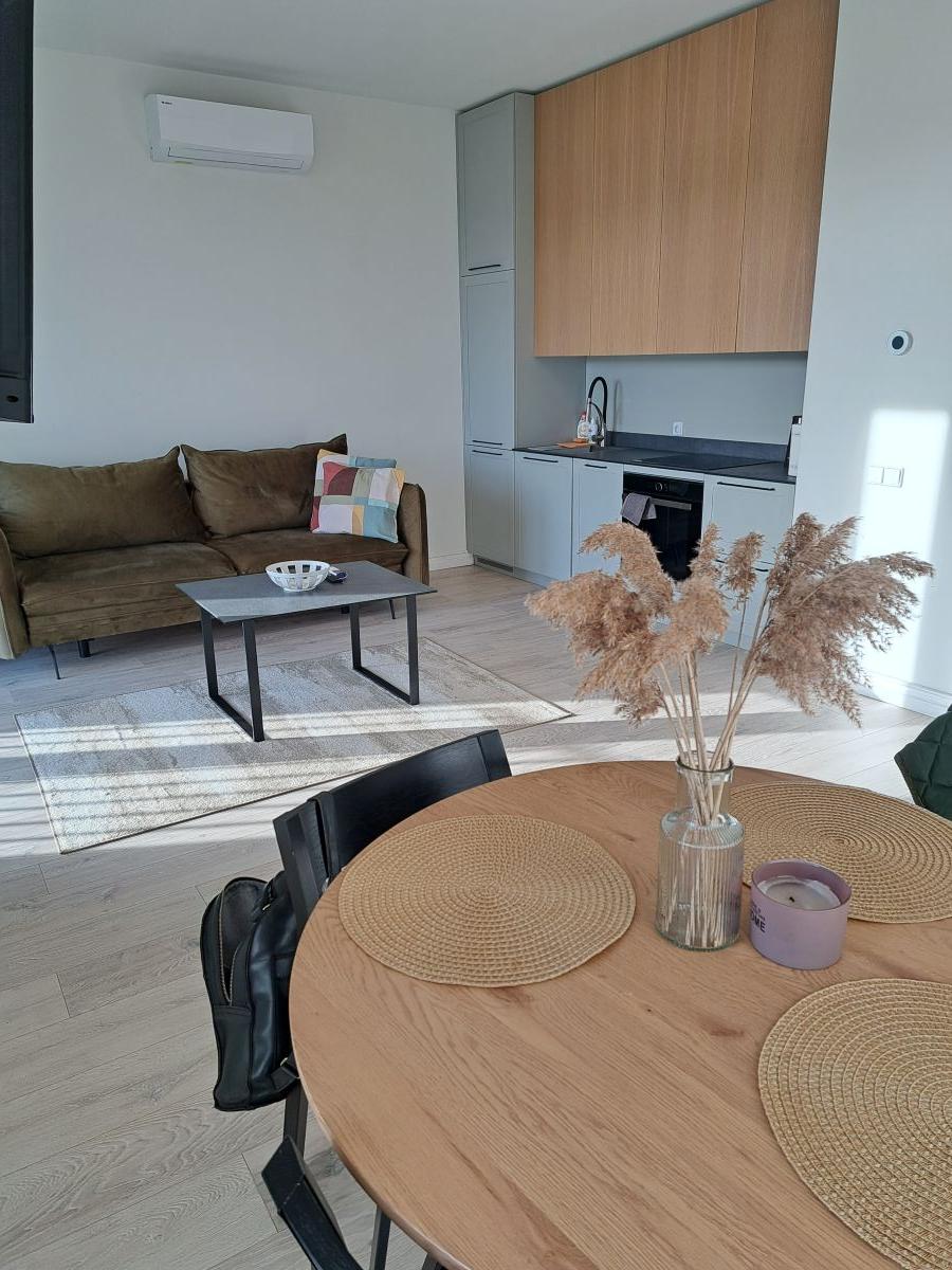 Puikūs apartamentai Mano Jūra uždarame kvartale. Du kambariai , miegamasis ir svetainė sujungta su virtuve. Apartamentuose viskas ko reikia buityje: skalbimo mašina, kondicionierius, indai, patalynė. Labai graži aplinka,šildomas baseinas, gultai, tvenkinukas.