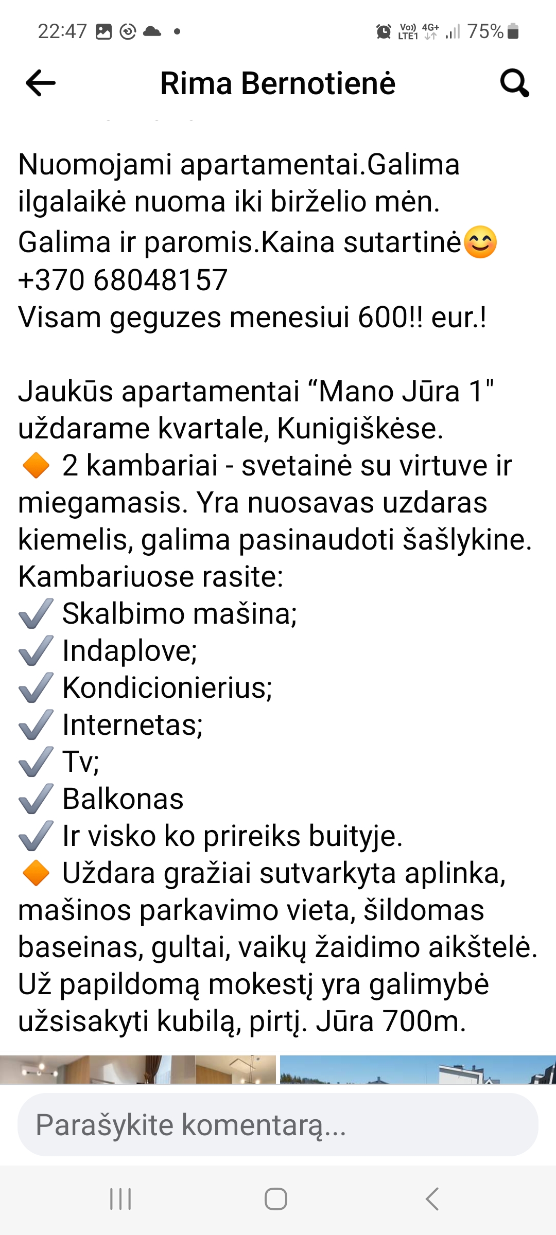 Nuomojamas tvarkingas, šiuolaikiškas 2 kambarių butas (37 m2). Pilnai įrengtas ir pritaikytas iškart gyventi: visi reikiami baldai, buitinė technika (šaldytuvas, mikrobangų krosnelė, viryklė, skalbimo mašina, televizorius), patalynė, rankšluosčiai, indai, pakabos. Bute gali apsigyventi 1-2 asmenys. Miegamajame dvigulė lova, svetainėje išskleidžiama sofa- lova. Pilnai apstatyta virtuvė su indais, stalo įrankiais ir pagrindinėmis priemonėmis maisto ruošai (puodai, […]