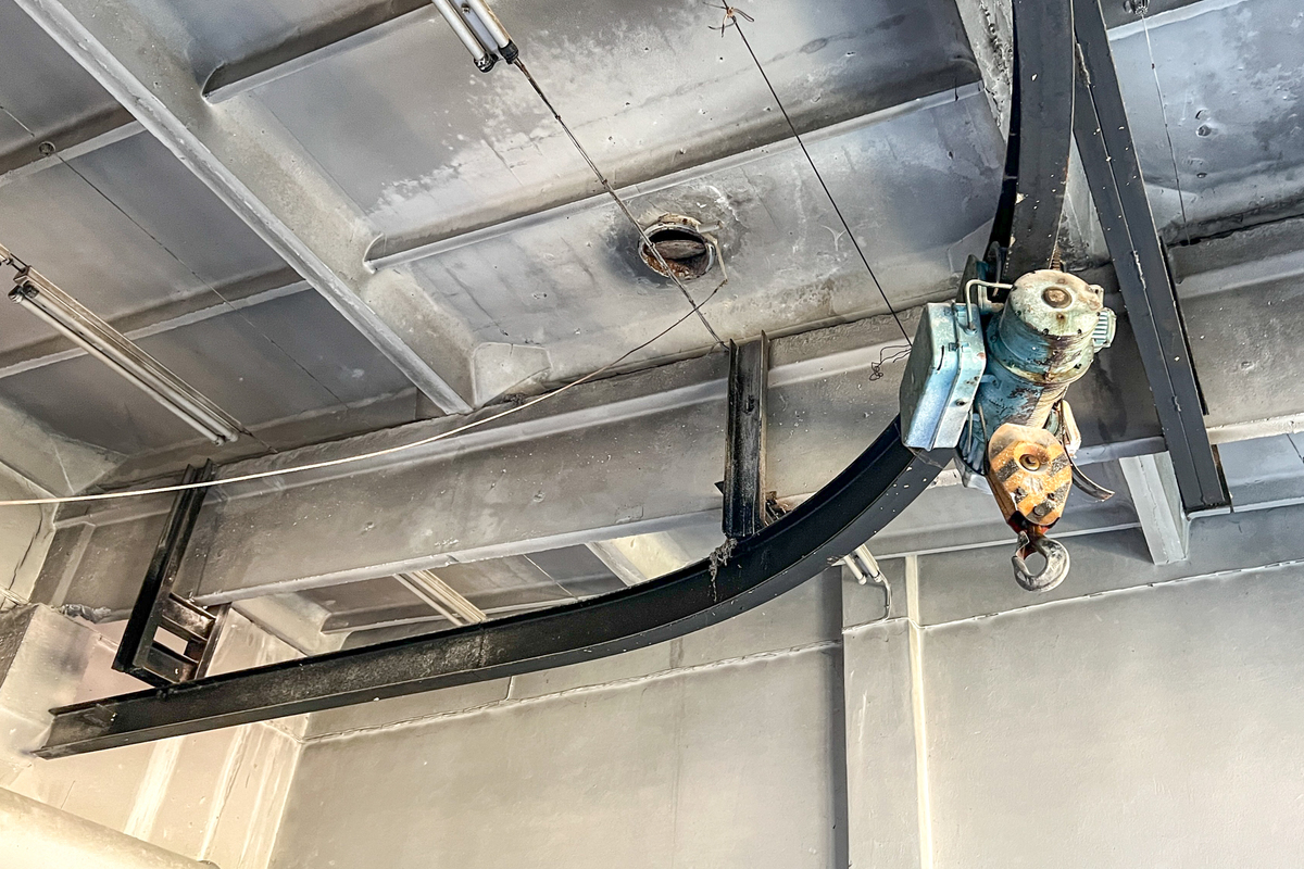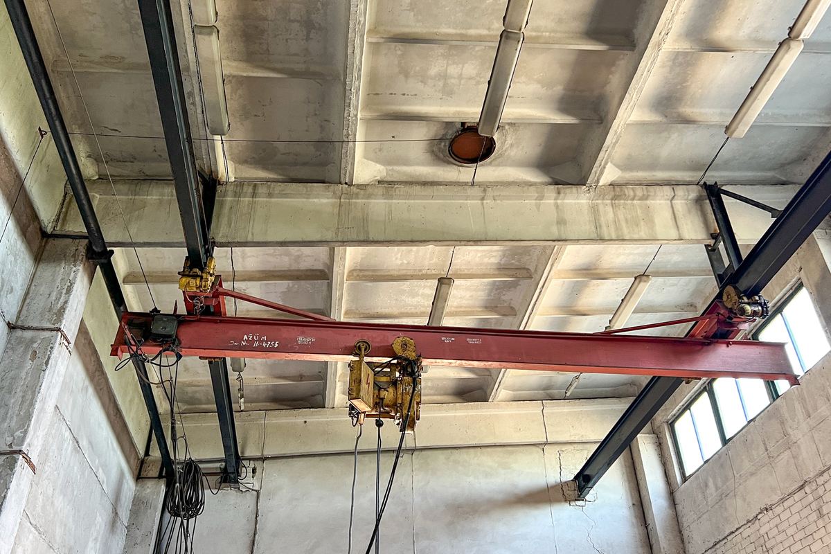 – Aukštos lubos (7,7 m), yra tiltinis kranas;