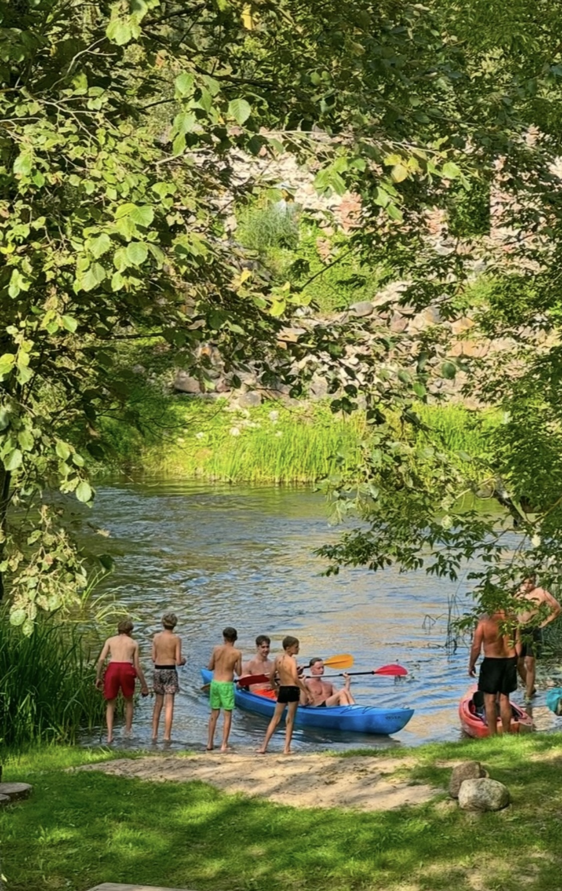 Nameliai prie Jūros upės, stovyklavietė Dobilų Slėnis, baidarės