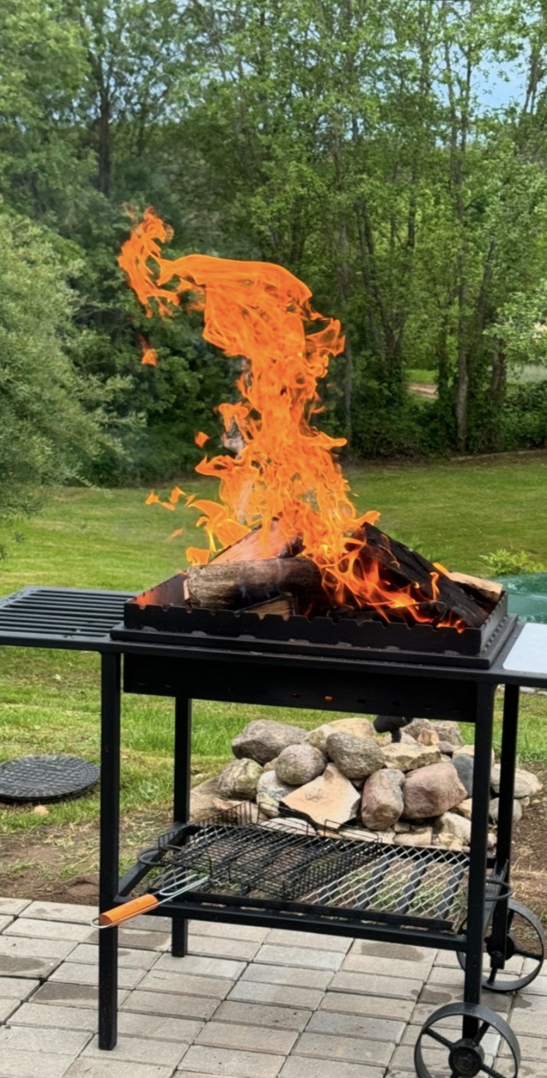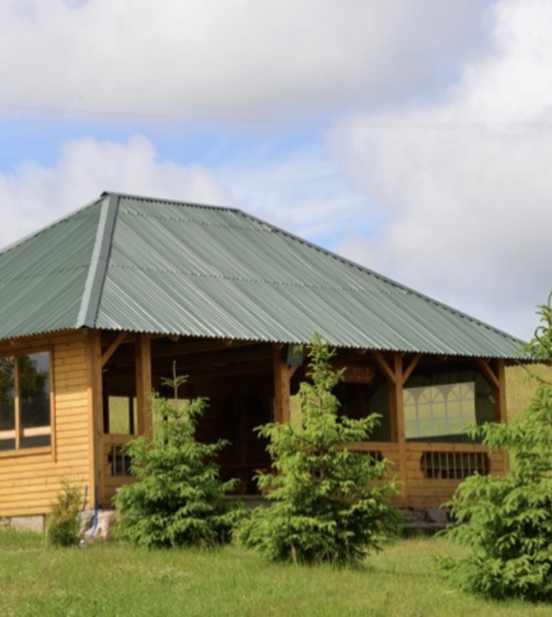 Nakvynė sodyboje arba stovyklavietėje, pavėsinės, kepsninės, pirtis ant upės kranto.